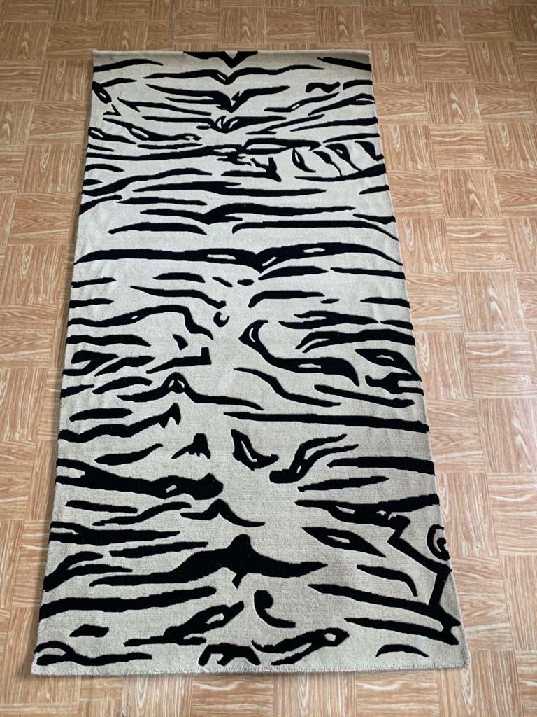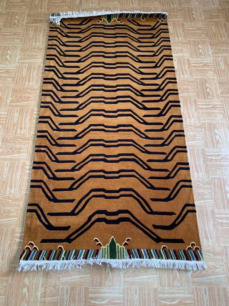 These carpets are made in 100% wool with 100 knots/inch. They are hand-made by Tibetan and Nepali craftsman in Kathmandu, Nepal using a special "Tibetan knot" and take over a month to be created.